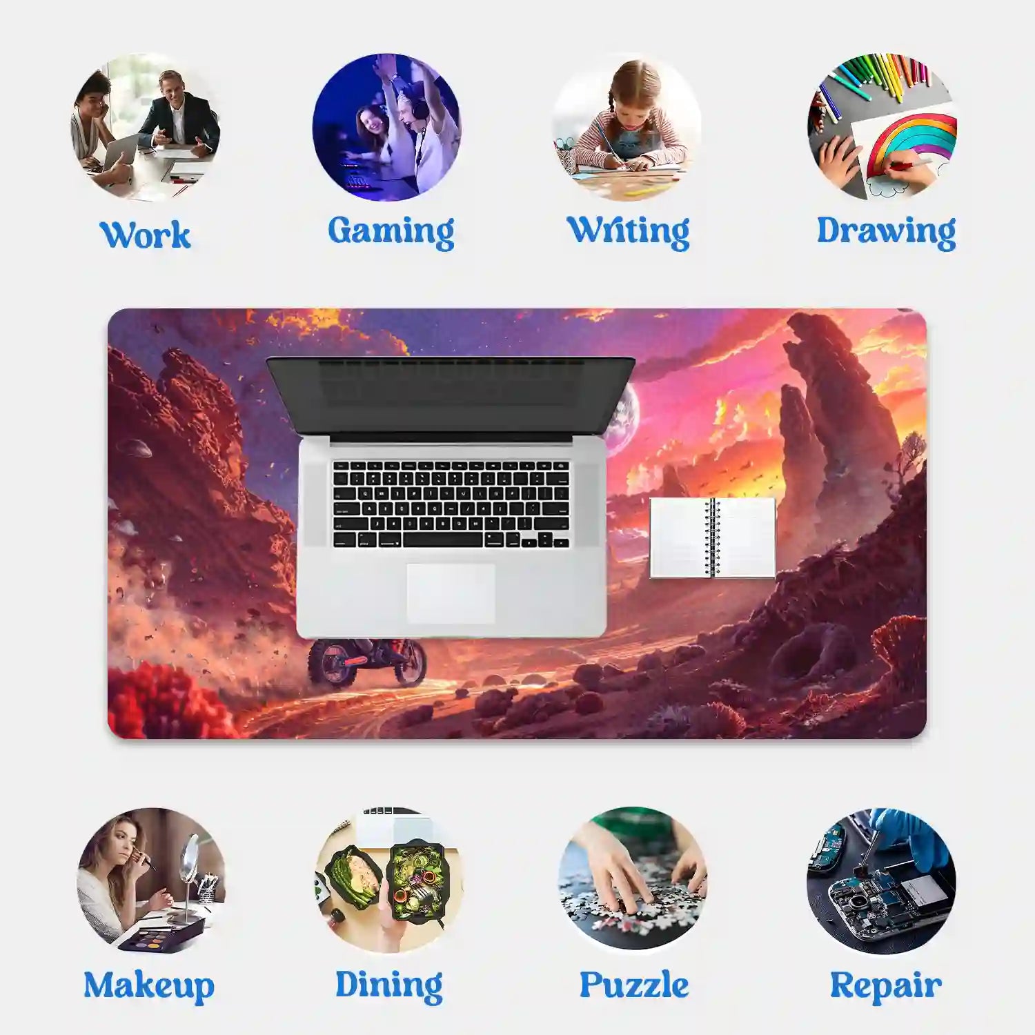 - Our desk mat features a non-slip natural rubber base that firmly grips your desk, keeping the mat securely in place.