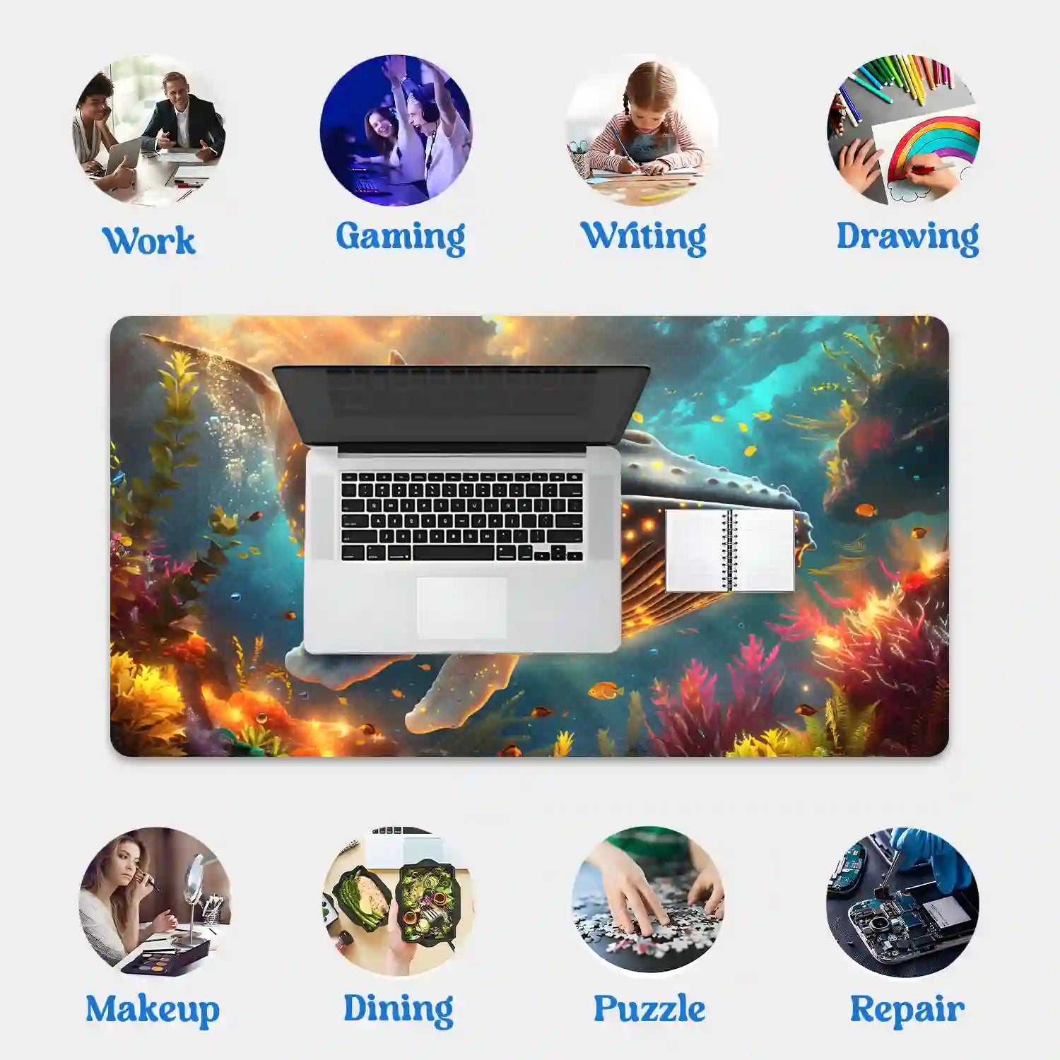 - Our desk mat features a non-slip natural rubber base that firmly grips your desk, keeping the mat securely in place.