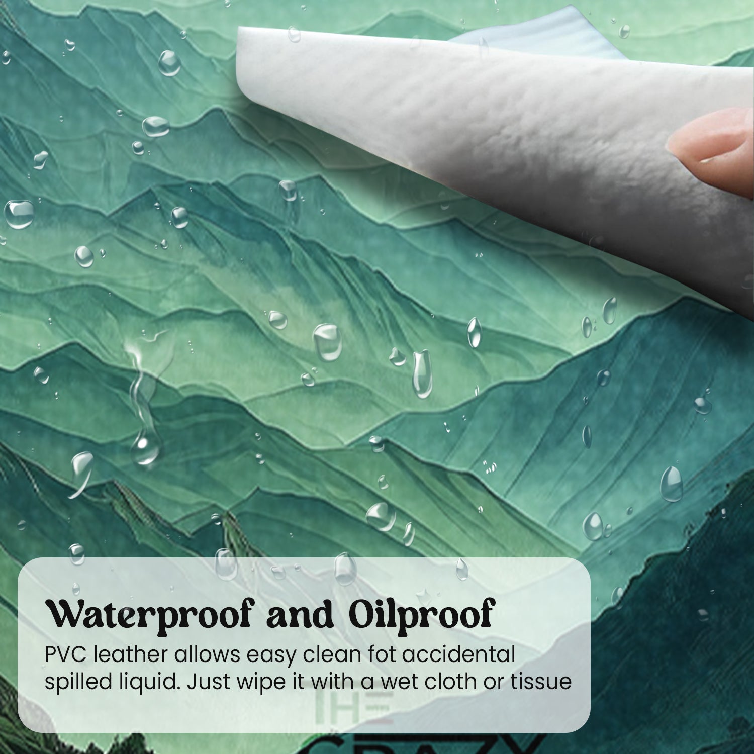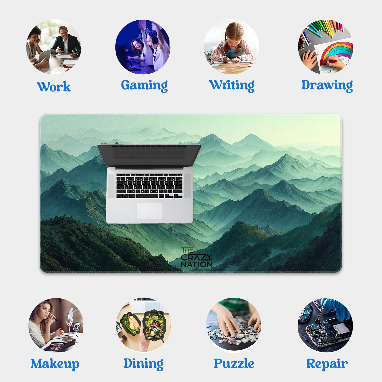 Bring the tranquility of nature to your desk with the Green Mountain Landscape Desk Mat from The Crazy Nation. This extra-large extended mousepad features a stunning, layered mountain design in soothing green tones — ideal for those who love the outdoors or want a calming visual in their workspace.