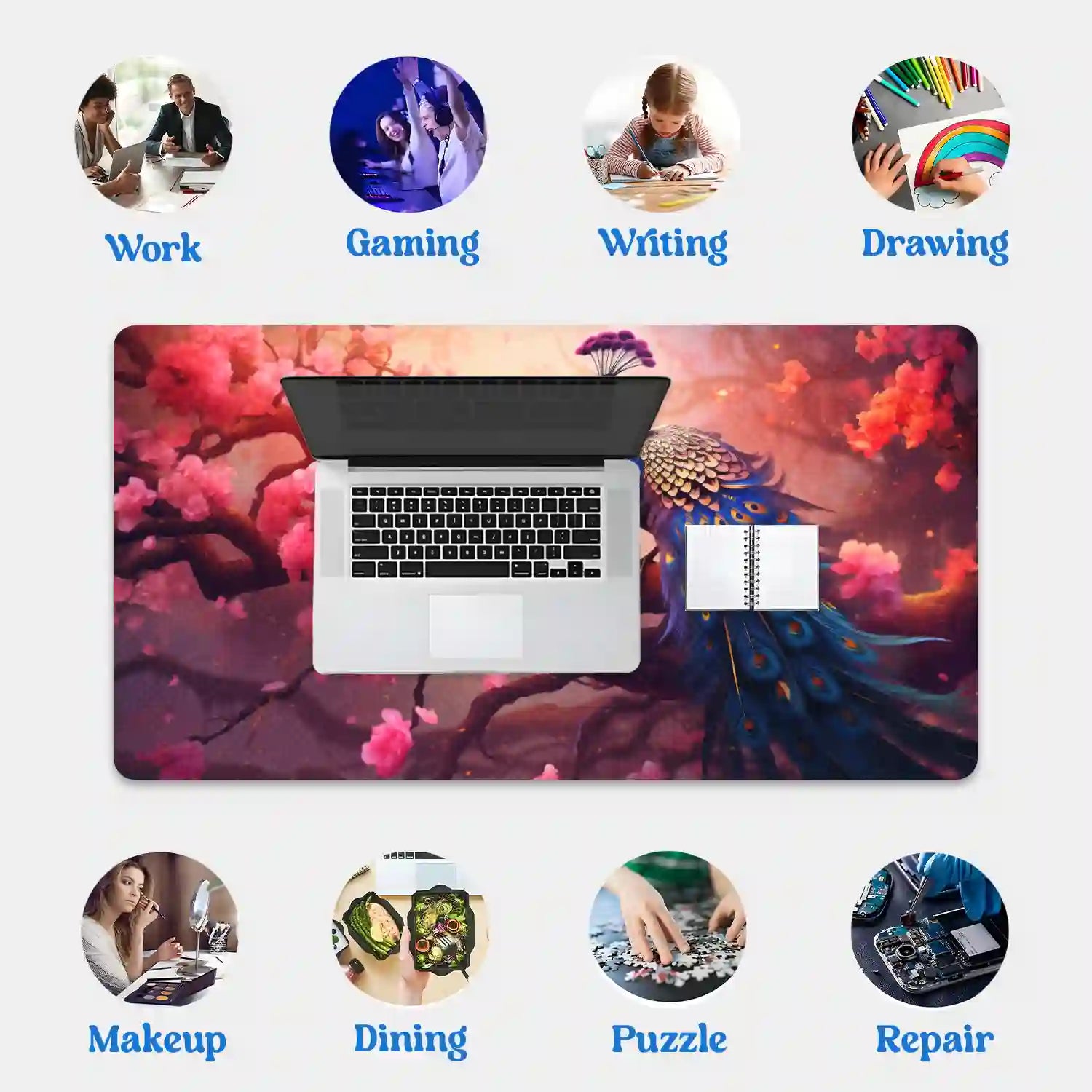 - Our desk mat features a non-slip natural rubber base that firmly grips your desk, keeping the mat securely in place.