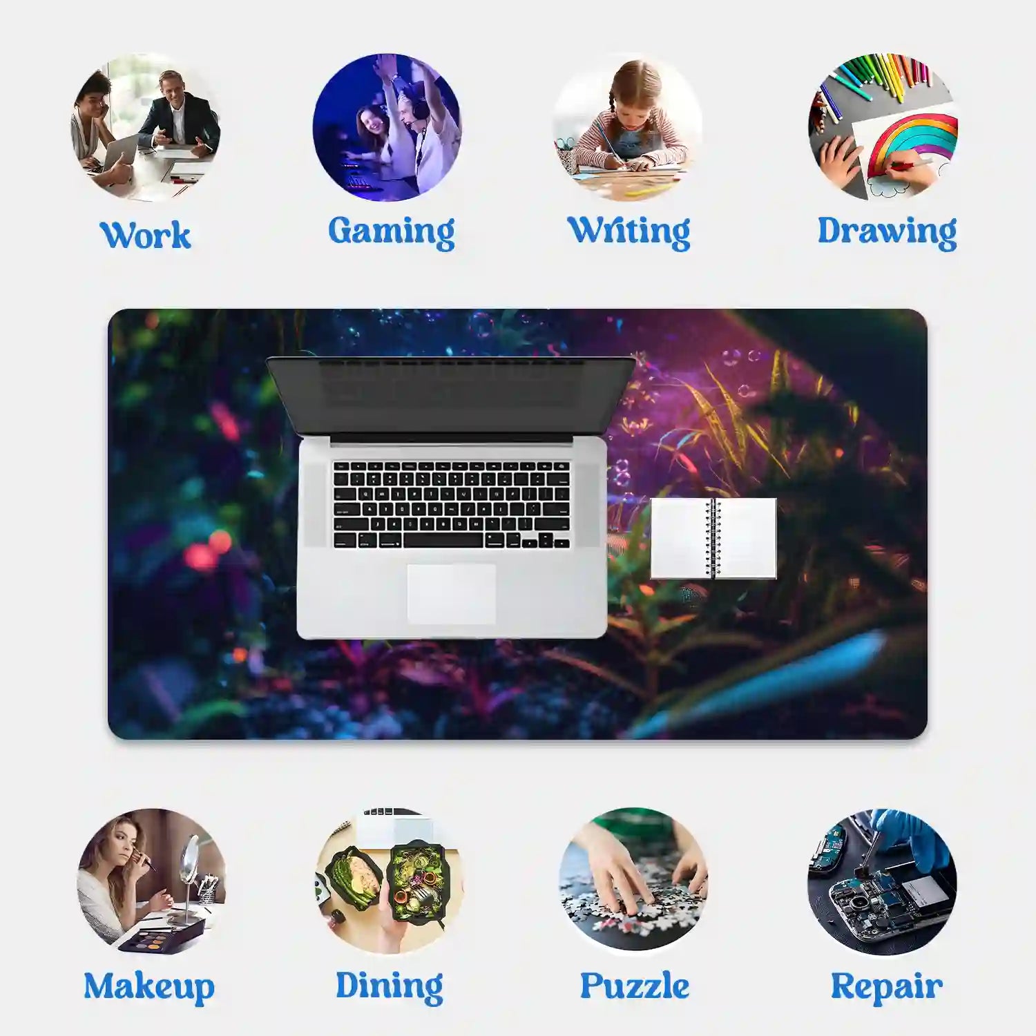 - Our desk mat features a non-slip natural rubber base that firmly grips your desk, keeping the mat securely in place.