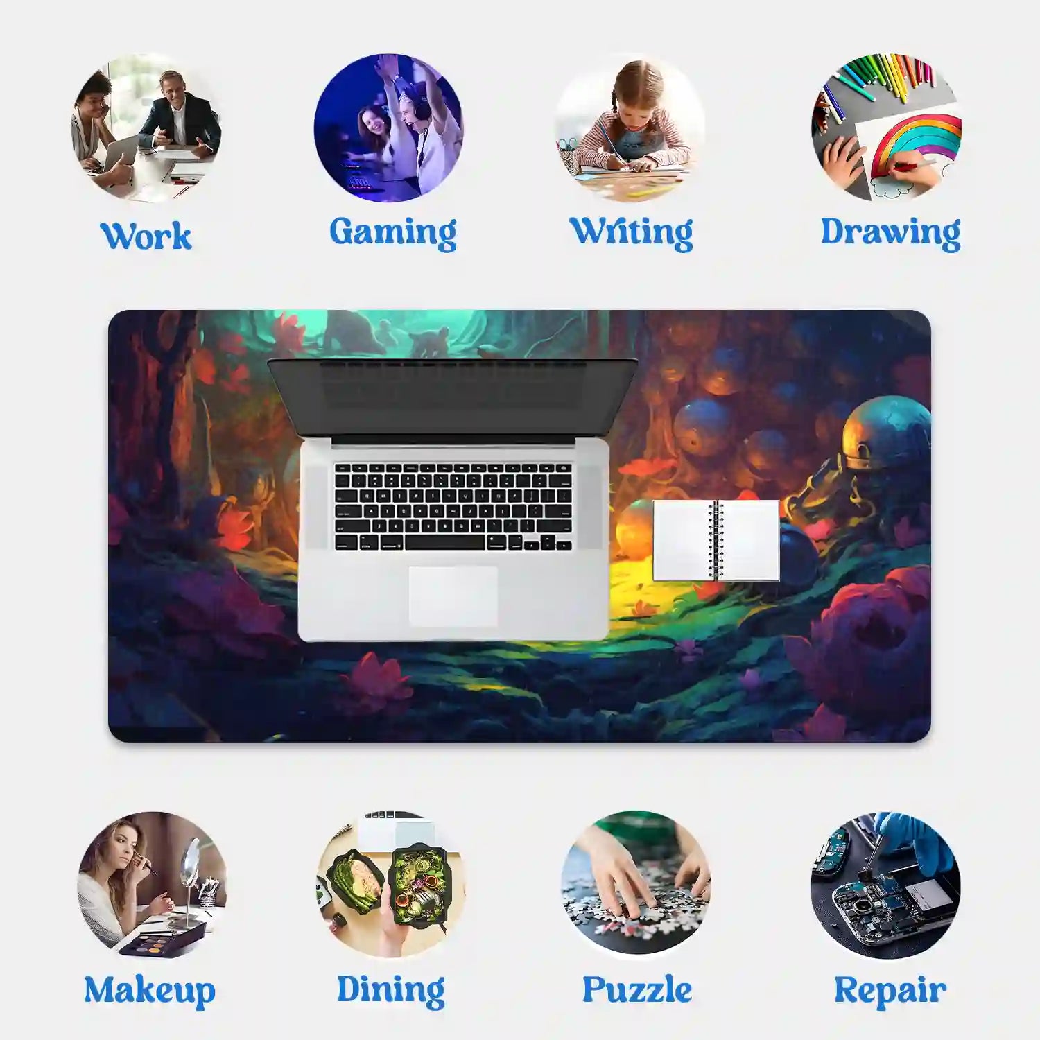 - Our desk mat features a non-slip natural rubber base that firmly grips your desk, keeping the mat securely in place.